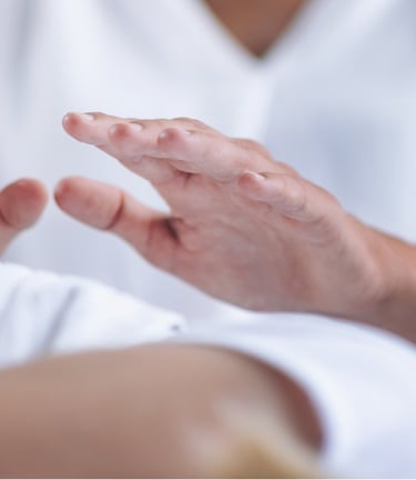 Imposição de mãos para canalizar a energia vital universal e promover o equilíbrio energético, físico, mental e emocional.